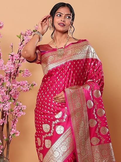Banarasi Silk Gold Zari Saree-6.3 Mtr(Dark Pink;Golden)