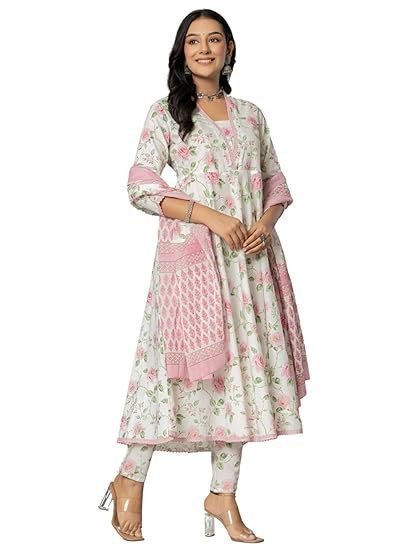 WomenCotton Printed Anarkali Kurta with Palazzo Pants and Dupatta