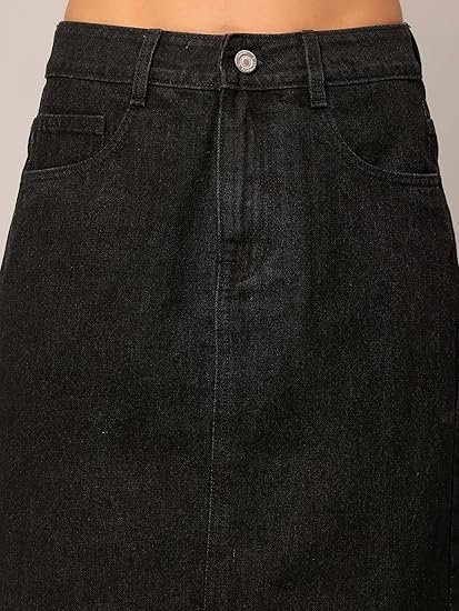 • Style: Midi Skirt | Closure: Button and Zip Fly | Length: Midi | Pockets: 2 Side Pockets, 2 Back Pockets & 1 Coin Pocket | Fit: Straight | Stretch: No | Rise: High Rise