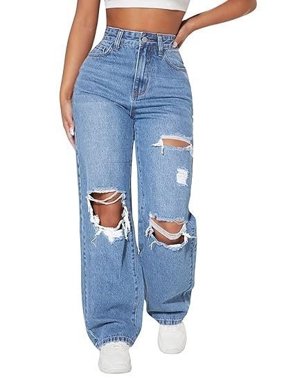 High Waist Ripped Straight Leg Pant & Trouser for Women’s & Girl’s