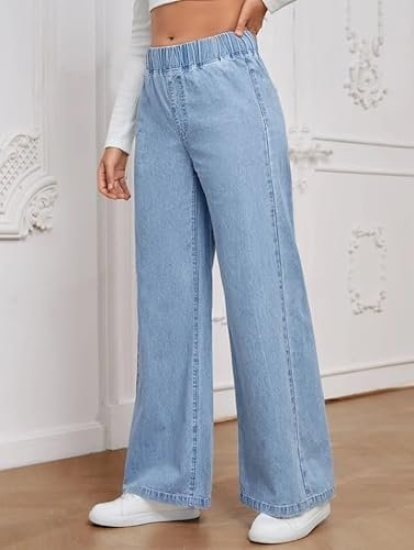 Elevate your casual wardrobe with these sophisticated high-waisted wide-leg jeans. These black denim trousers feature a comfortable elastic waistband that offers a perfect fit without the hassle of buttons or zips. The relaxed boyfriend cut flows gracefully from hip to hem, creating an effortlessly chic silhouette that suits various body types. The loose-fitting design ensures unrestricted movement while maintaining a stylish appearance. These versatile pants pair beautifully with everything from fitted tops to casual tees, making them perfect for both everyday wear and smart-casual occasions. The high-rise waist flatters your natural curves and provides excellent coverage when sitting or bending. The classic black colour offers endless styling possibilities, while the premium denim material promises lasting wear. These trousers combine contemporary fashion with practical comfort, making them an essential addition to any modern wardrobe.