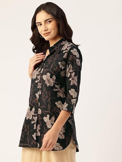 Collared cotton shirt with 3/4 sleeve, Hip length for a stylish look, Made from high-quality, breathable cotton fabric, Casual wear perfect for daily activities.