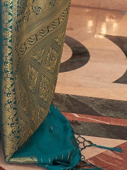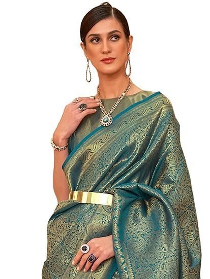 • Women’s Kanjivaram Woven Silk Banarasi Saree redefines luxury with its exquisite craftsmanship and enduring allure.
