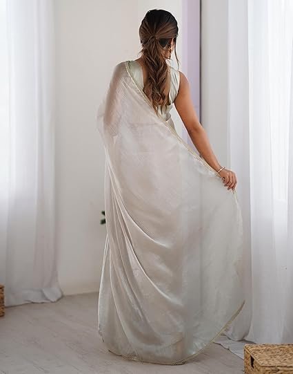 Shimmer Chiffon Lace Border Saree With Unstitched Blouse Piece