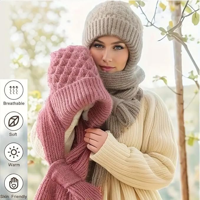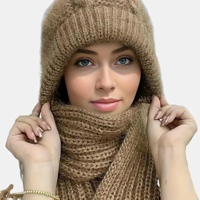 Winter Cap for Women with Mufflers, Knitted Woolen Cap for Girls, Stylish Woolen Caps for Women Winter Wear Scarf (MULTICOLOR)