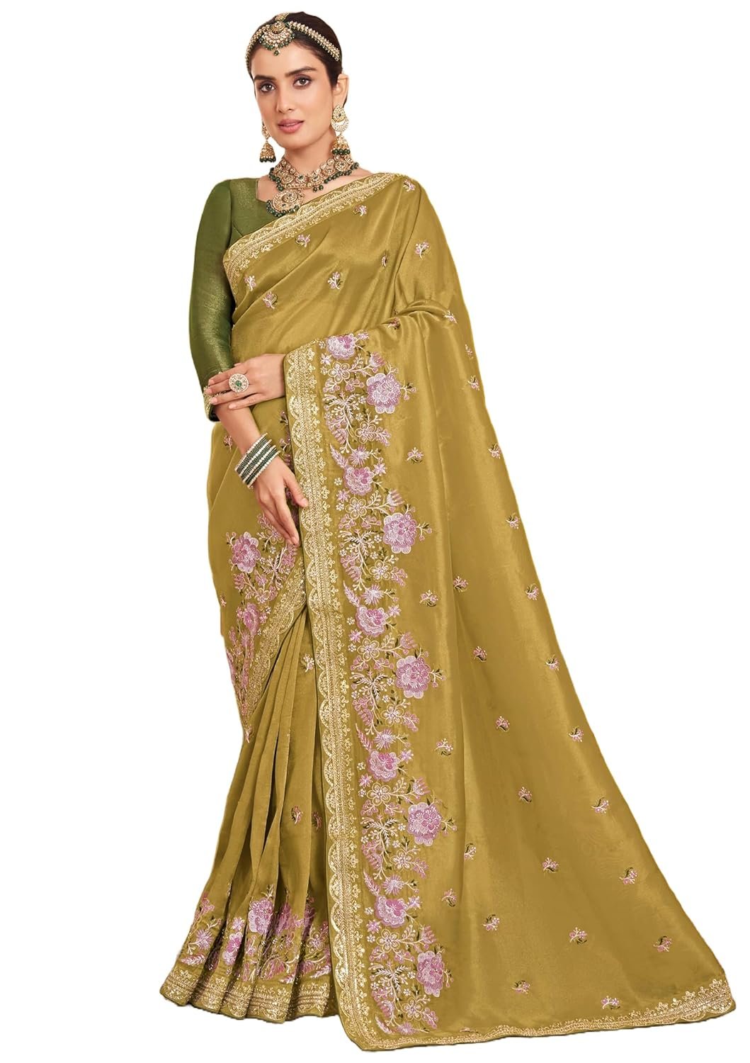 - Laxmipati Sarees, Women’s Saree, Latest Saree Design 2025, Saree Party Wear , Saree For Women , Printed Saree, Saree Material :Tissue Organza Blouse Material : Tissue | Saree Color : Olive Green Saree Pattern: Floral Embroidery Blouse Pattern :Soild