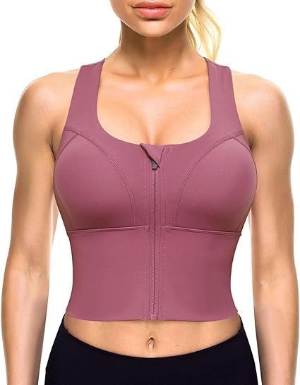 - FRONT ZIPPER & X-SHAPED BACK DESIGN: This women front closure long lined sports bra has been carefully designed to be easier to slip on and off. This crop top sports bra for women has a cross strap to keep the strap from slipping off your shoulders. The highlight of this lingerie is that there are small fabric strap pieces on the top & bottom of the zipper to prevent chafing or pinching your skin when zipping.