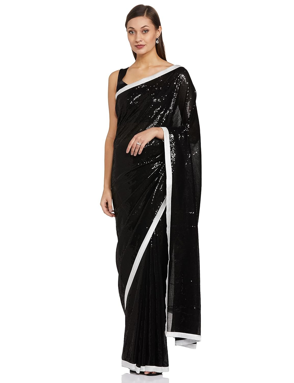 • SUNEET VARMA Designer solid sequin sheeted saree with solid border & solid unstitched blouse fabric