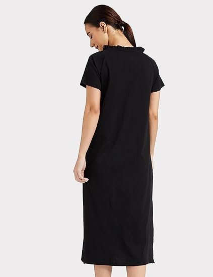 • PRODUCT DETAILS: Calf-length, regular fit nighty featuring ruffle detail at neck