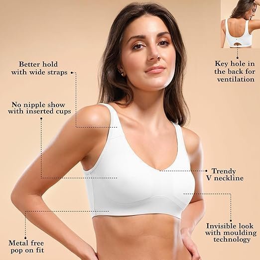 - Comfortable Fit: This women’s bra comes with a back keyhole for ease of wear. The metal-free slip-on design offers the softest feel, while the wide straps provide support and no-dig comfort, making it the ideal choice for both day and nighttime use.