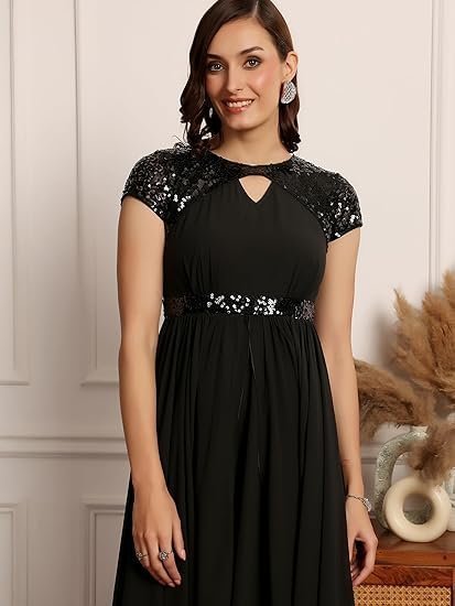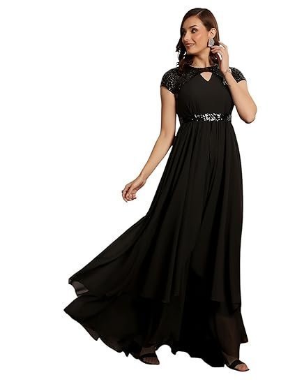 - Style: Layered | Pattern: Embellished | Fit: Relaxed Fit | Length: Maxi | Closure: Zip | Neck: Round Neck | Sleeves: Short Sleeve | Pockets: No