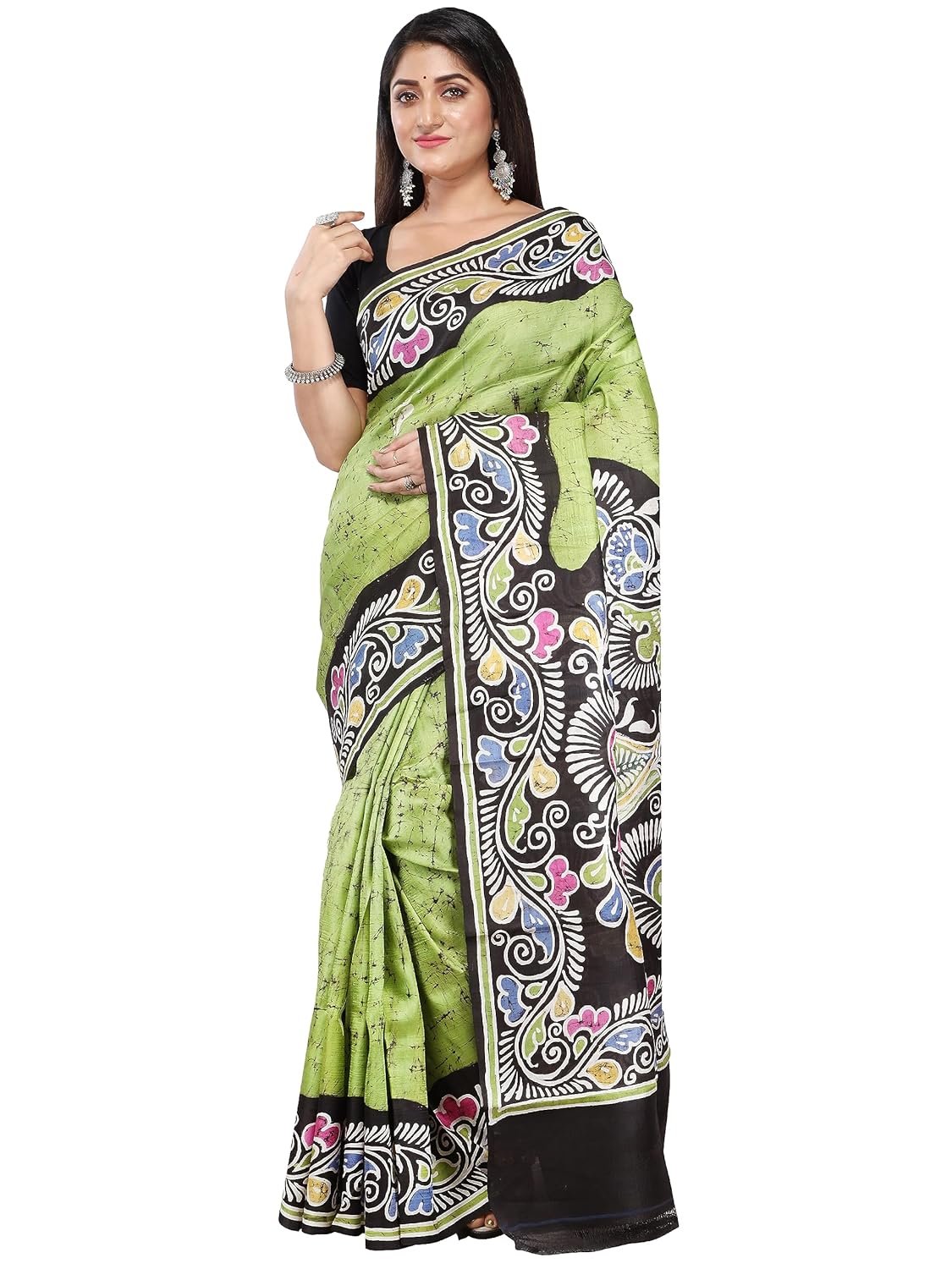 - Pure murshidabad silk batik printed saree with running unstitched blouse piece