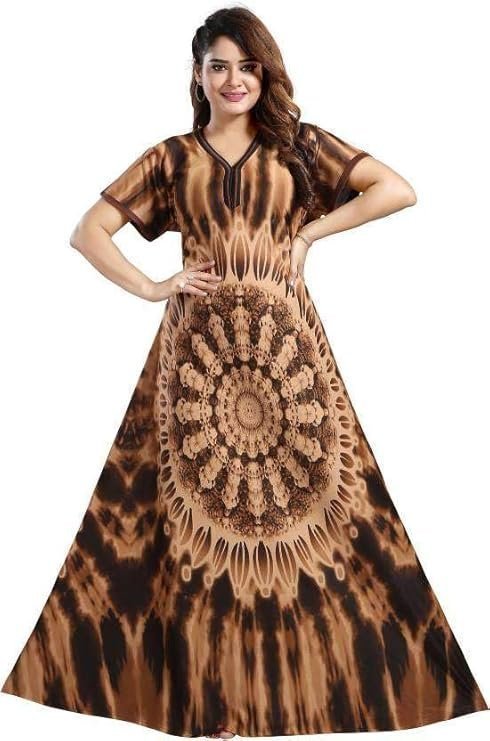 Women?s Satin Night Dress | Floral Printed Satin Fabric Long Nighty | Soft Sleepwear for Women (Round Design Nighty)